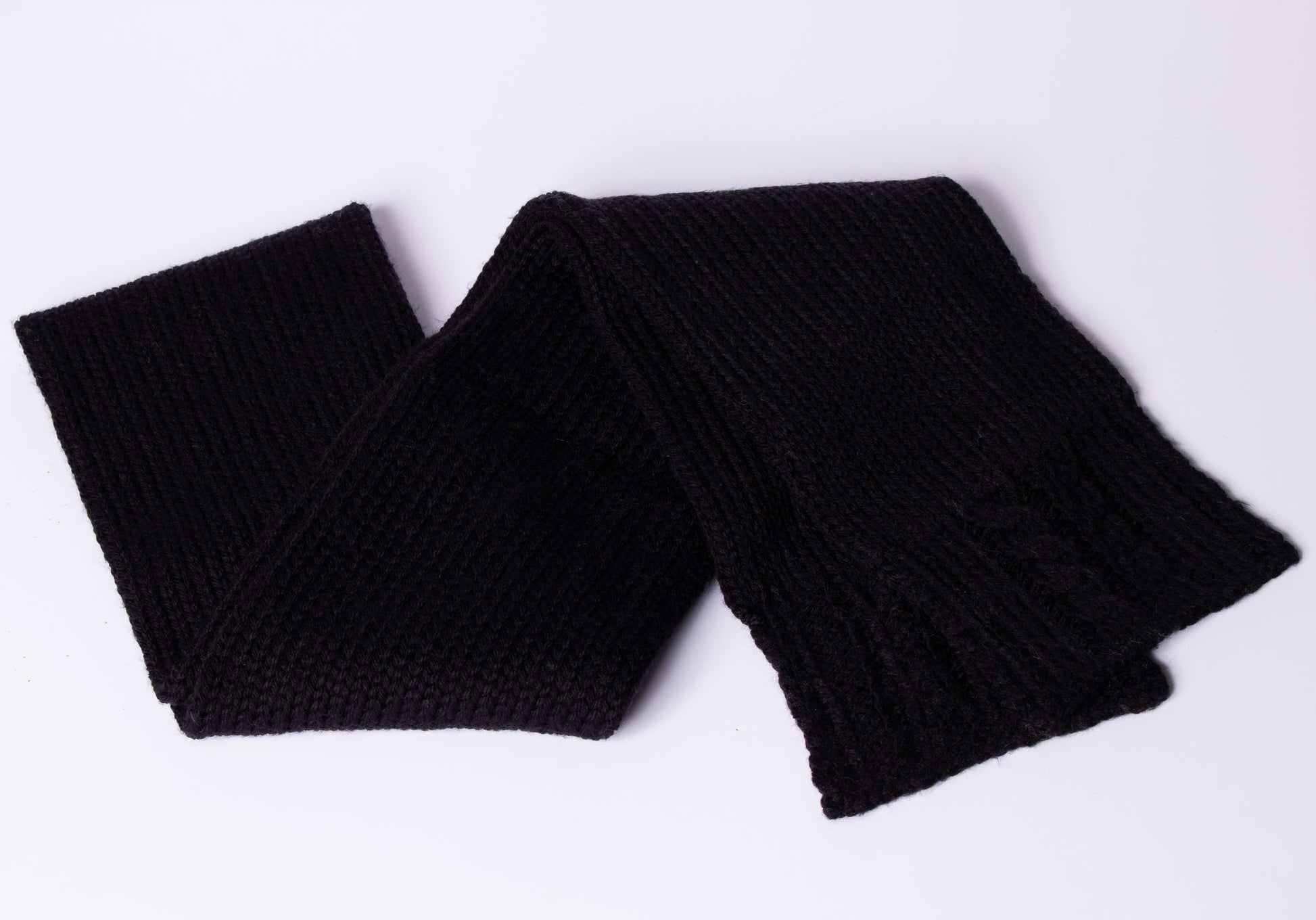 This one of a kind handmade black bulky knit fabric combines soft acrylic fiber with substantial weight, creating a luxuriously tactile material for cooler weather.