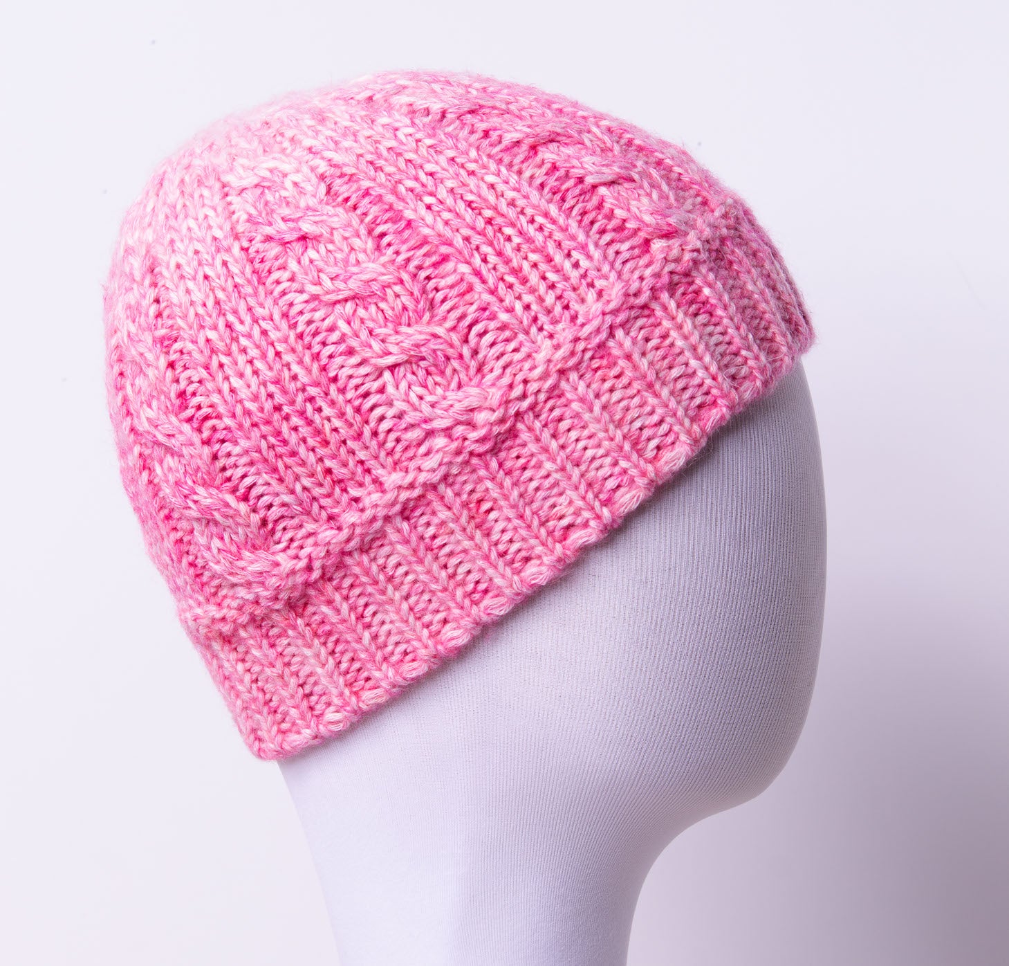 This pebbled pink hat showcases a refined gradient flowing from rose to pastel pink, delivering visual depth with understated elegance. The expertly blended polyester-acrylic composition provides a luxuriously soft hand while maintaining structural integrity. Its cable knit construction offers dimensional texture, and despite the substantial appearance, the fabric remains remarkably lightweight—perfect for extended wear without compromising comfort or style.